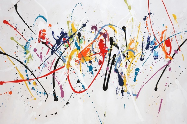 Bold Paint Splattered Art in a Contemporary Living Room