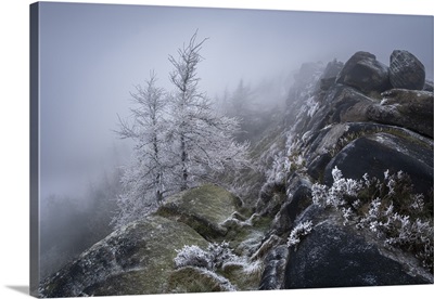 Hoar Frosted Trees, The Roaches Rock Formation, Winter, Staffordshire, England