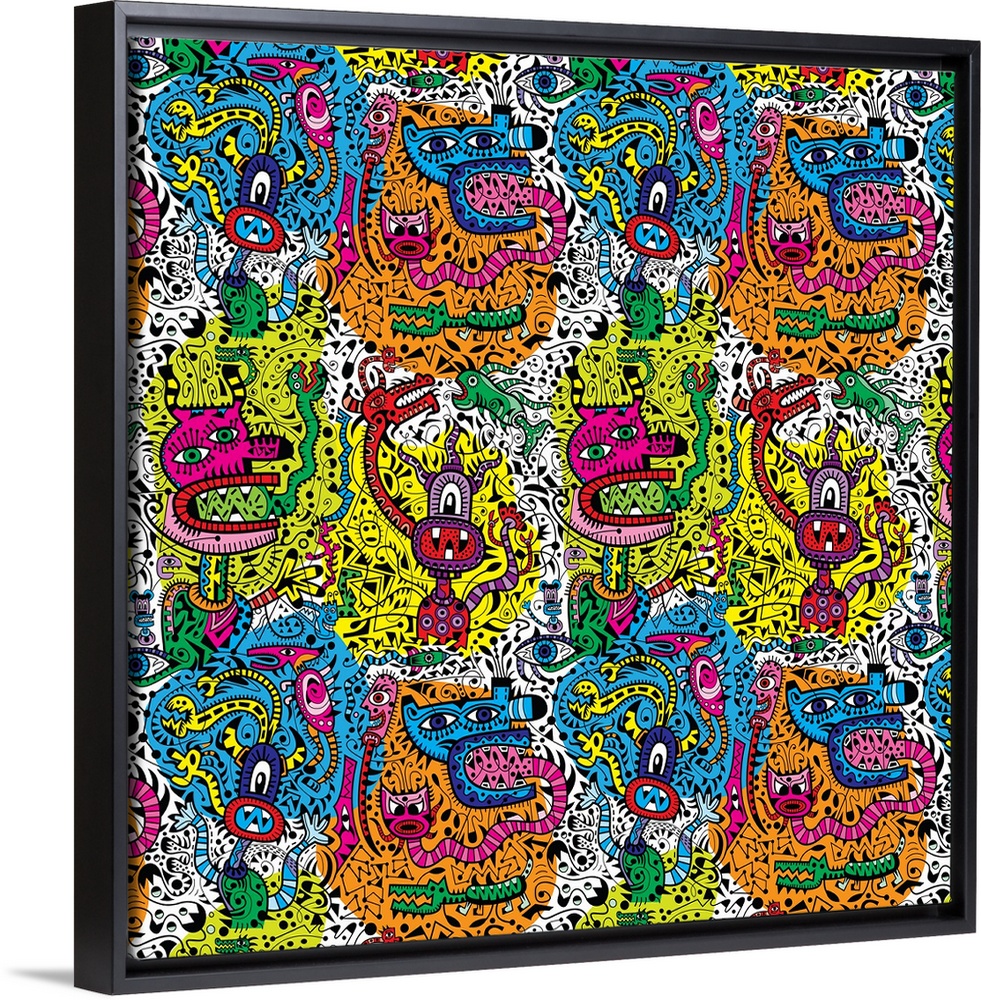 <p>Contemporary mural artwork of monsters and other abstract figures in a confusion of colors and patterns.</p>