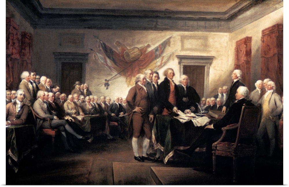 <p>The 1776 signing of the Declaration of Independence by Trumbull in Pennsylvania State House, now Independence Hall in Philadelphia, PA, USA.</p>