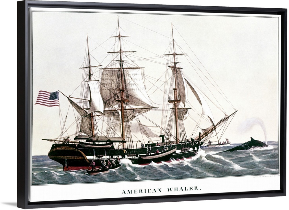 <p>1850s American Whaler - Whaling Ship Chasing Whale In Action - Currier And Ives Lithograph - 1850.</p>