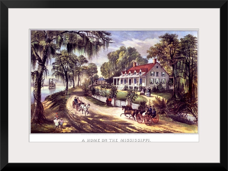 <p>1870s 1800s A Home On The Mississippi - Currier and Ives Lithograph - 1871.</p>
