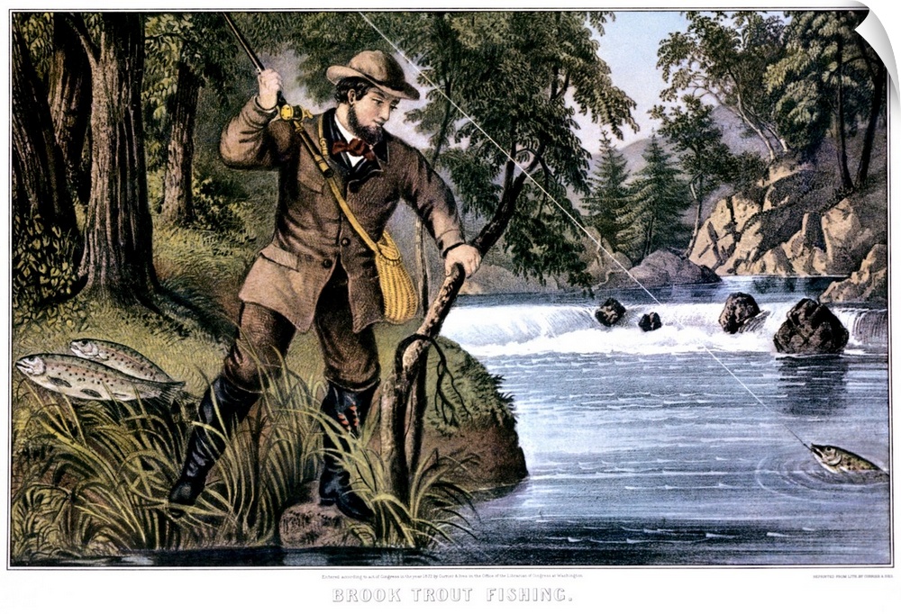 <p>1870s Brook Trout Fishing - Currier and Ives Lithograph - 1879.</p>