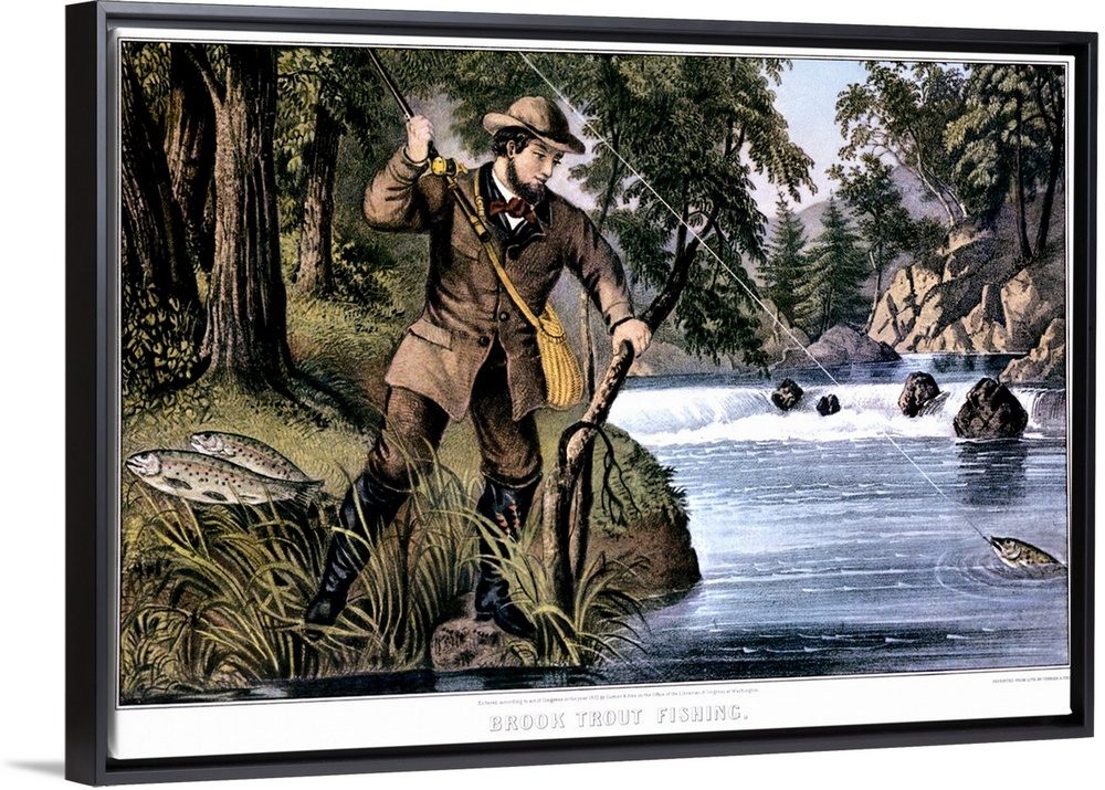 <p>1870s Brook Trout Fishing - Currier and Ives Lithograph - 1879.</p>