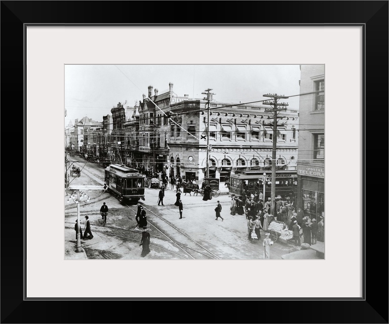 <p>1900's Intersection Of Fair Oaks And Colorado Streets Cable Cars Horse And Buggies Pasadena California USA.</p>
