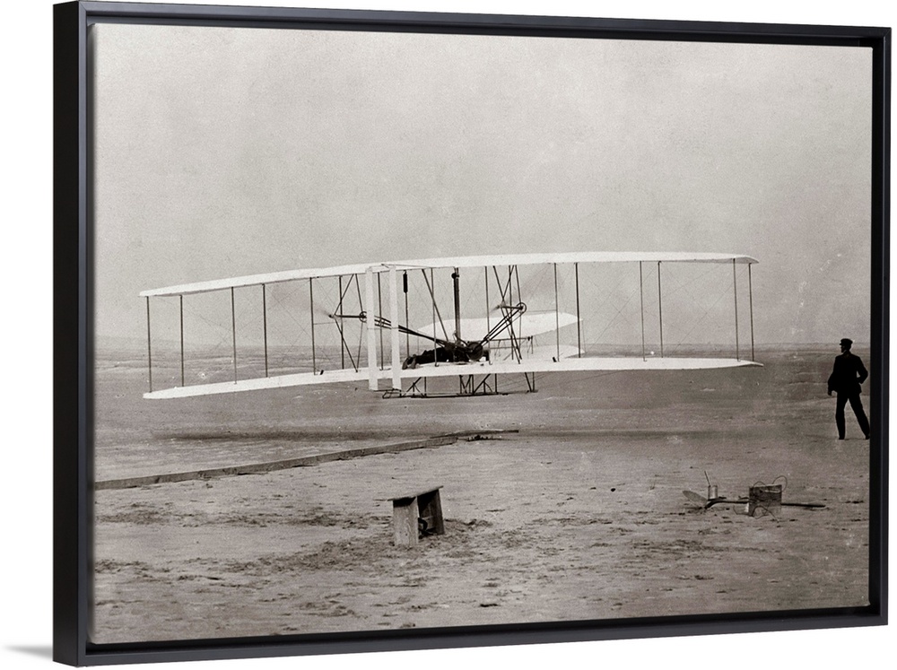 <p>1903 Wright Brothers' Plane Taking Off At Kitty Hawk North Carolina USA.</p>