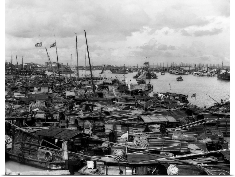 <p>1920's 1930's Busy Harbor On Pearl River Crowded With Many Sampans Boats Canton China.</p>