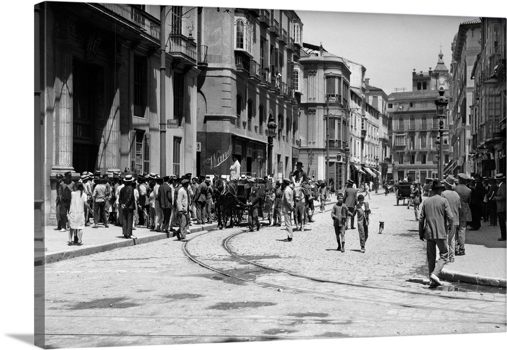 <p>1920's 1930's Street Scene With Crowd In Front Of Hotel Regina Malaga Spain.</p>