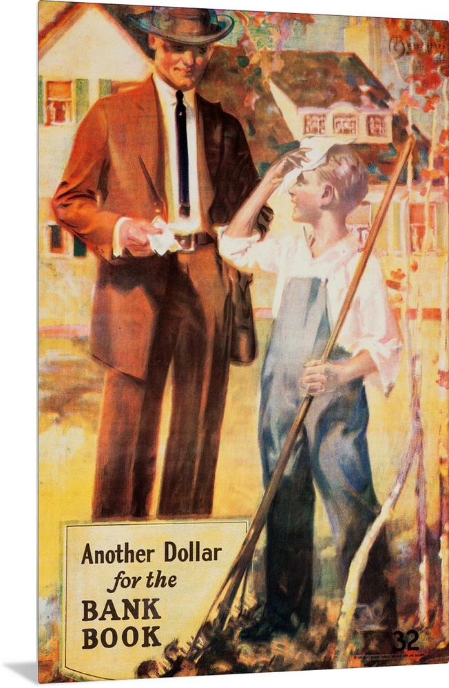 <p>Printed by National Service Bureau, Man pays boy for raking leaves.</p>