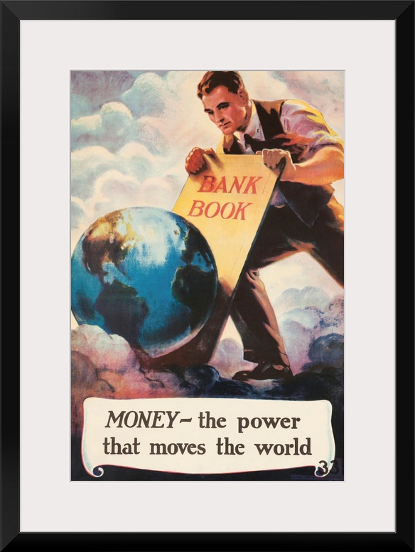 <p>Printed by National Service Bureau Man moves the world with a bank book as a lever.</p>