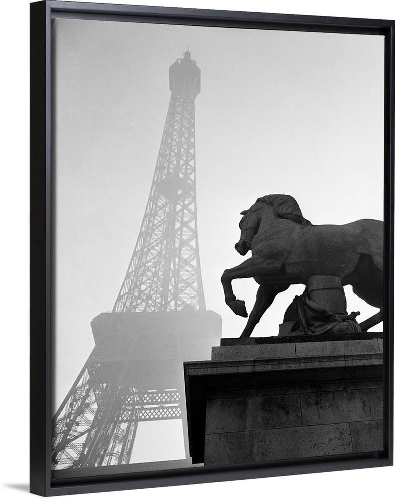 <p>1920's Horse Statue At Base Of Eiffel Tower Paris France.</p>