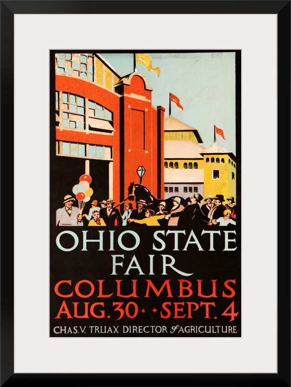 <p>1926 Ohio State Fair Advertising Poster, crowds of fairgoers and exhibitors in front exhibit Halls.</p>