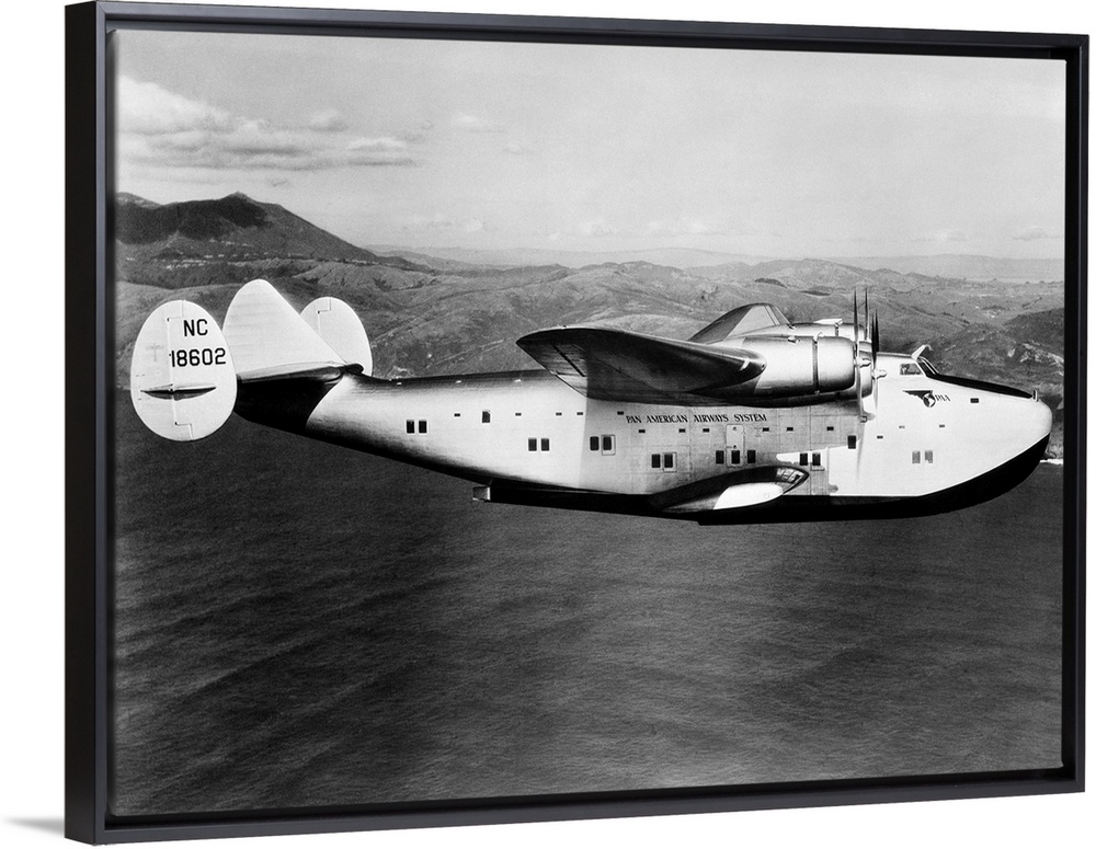 <p>1930s 1940s Pan American Clipper Flying Boat Airplane In Flight.</p>