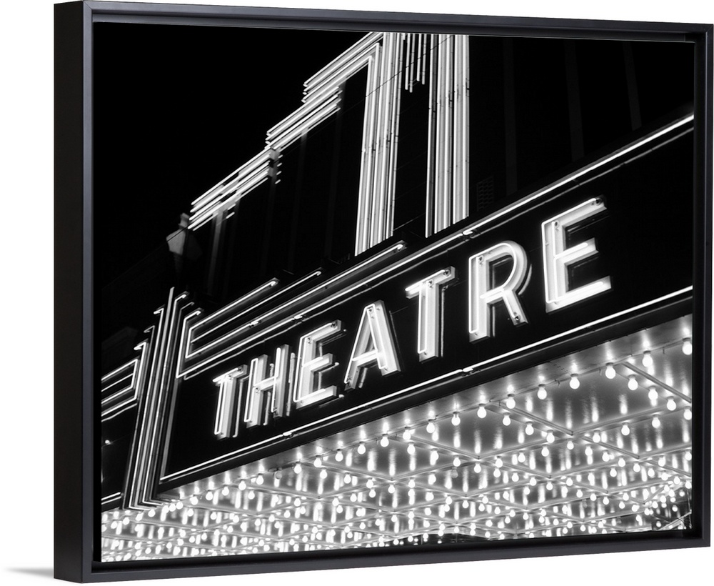 <p>1930's 1940's Theater Marquee Theatre In Neon Lights.</p>