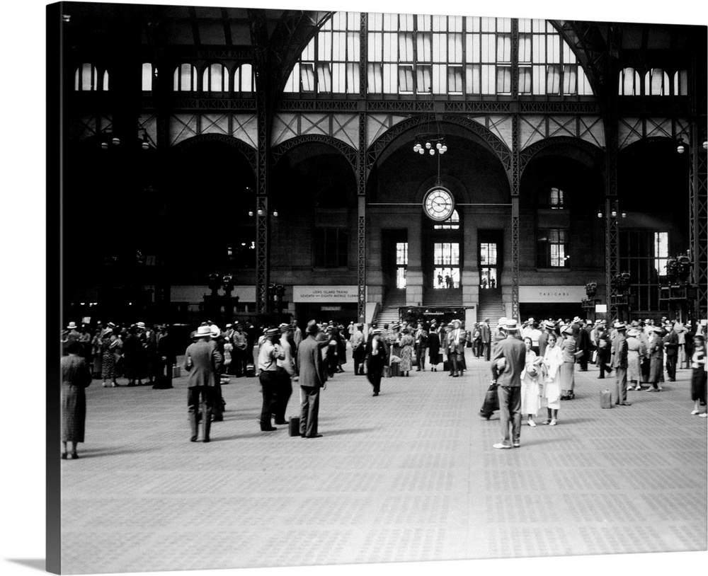 <p>1930's Pennsylvania Penn Station New York City Railroad Station People Passengers Travelers Transportation.</p>