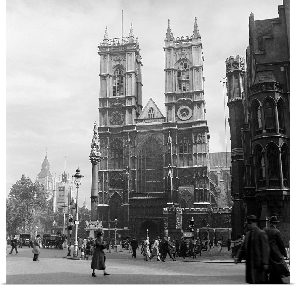 <p>1930's Street Scene Westminster Abbey City Of Westminster Central London England.</p>