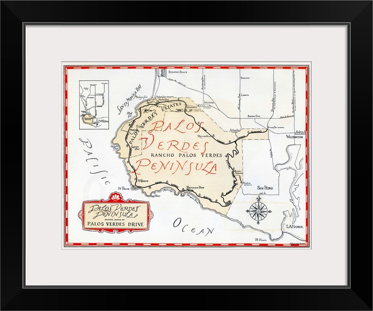 <p>1935 promotional map for the Palos Verdes Peninsula and the city of Palos Verdes Estates, incorporated in 1939 in Los Angeles County. Masterplanned by architect and city planner Frederick Law Olmsted, Jr., Palos Verdes Estates is one of the richest areas in the United States. Print, private collection.</p>