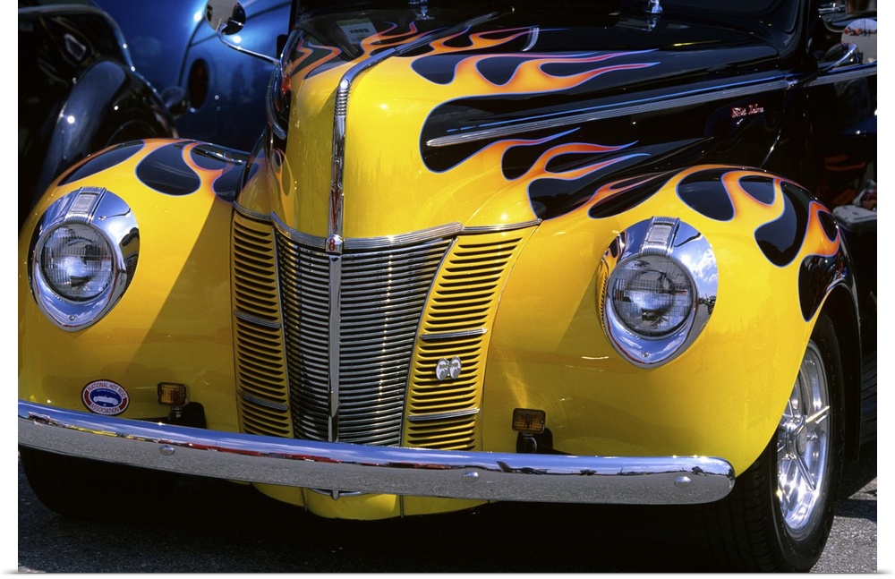 <p>1939 1940 Ford Flame Job Painted Hot Rod Automobile Hood Headlights Grill Front Bumper.</p>