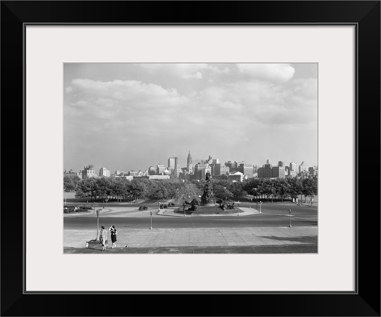 <p>1946 Skyline Of Philadelphia From Steps Of The Art Museum Looking Down Parkway To City Hall.</p>
