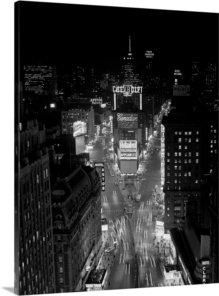 <p>1950's 1960's Night Aerial View Times Square From Times Building Looking North Manhattan.</p>