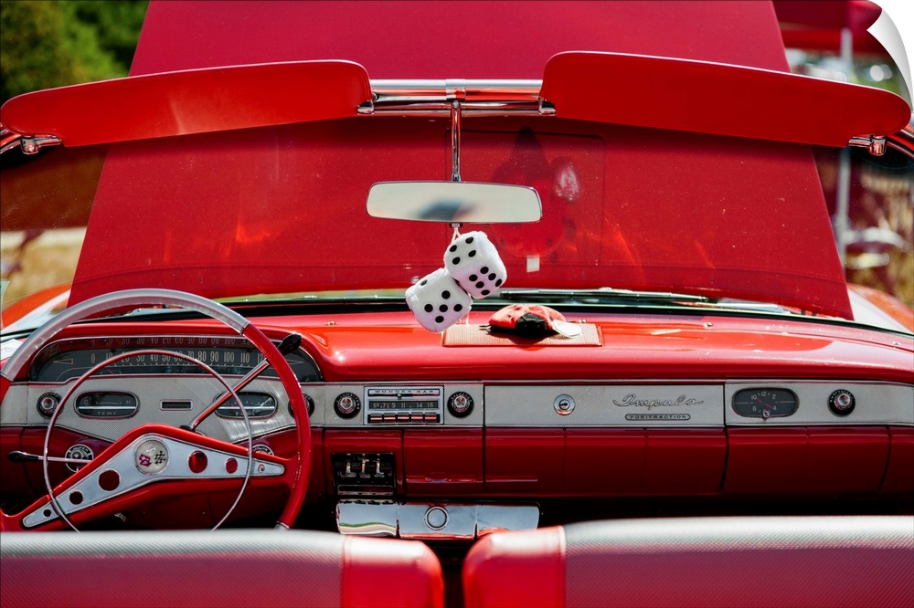 <p>1950s Chevrolet Impala Detail At Antique Car Show, Cape Ann, Gloucester, Massachusetts, USA.</p>
