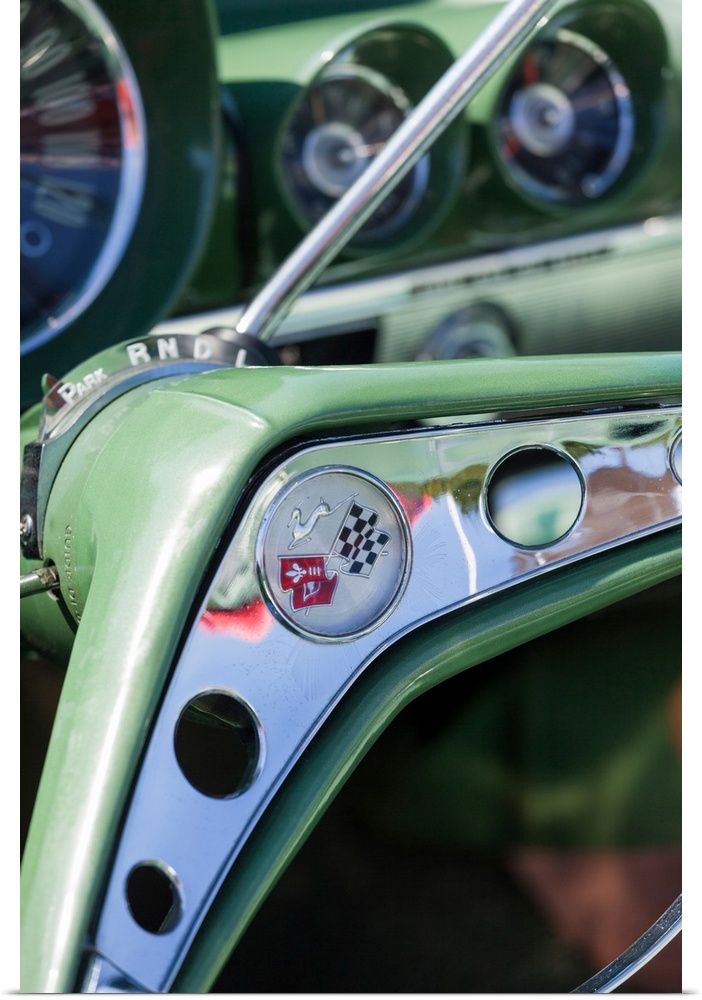 <p>1950s Chevrolet Impala Detail At Antique Car Show, Cape Ann, Gloucester, Massachusetts, USA.</p>