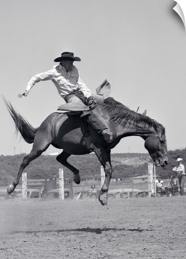 <p>1950s Cowboy Riding A Horse Bareback On A Western Ranch USA.</p>