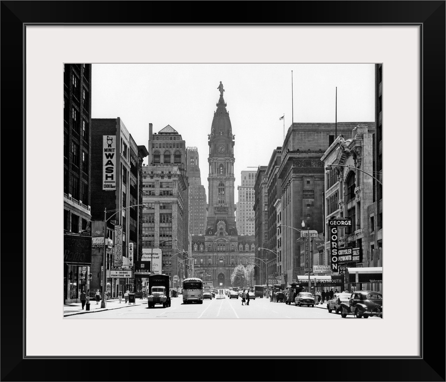 <p>1950's Downtown Philadelphia Pa USA Looking South Down North Broad Street At City Hall.</p>