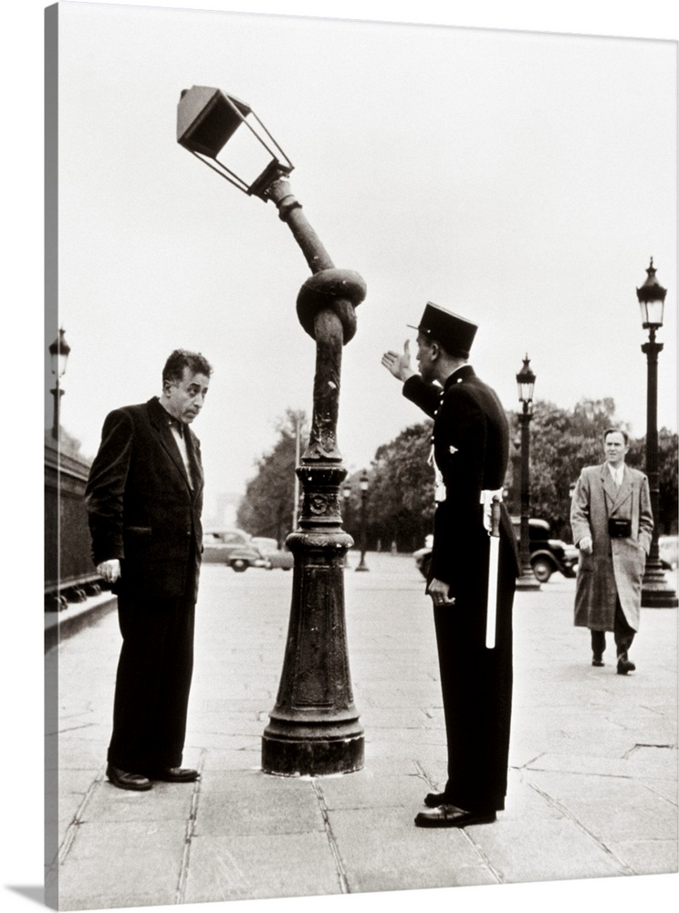 <p>1950s Funny French gendarme accusing man of tying streetlamp in a knot.</p>