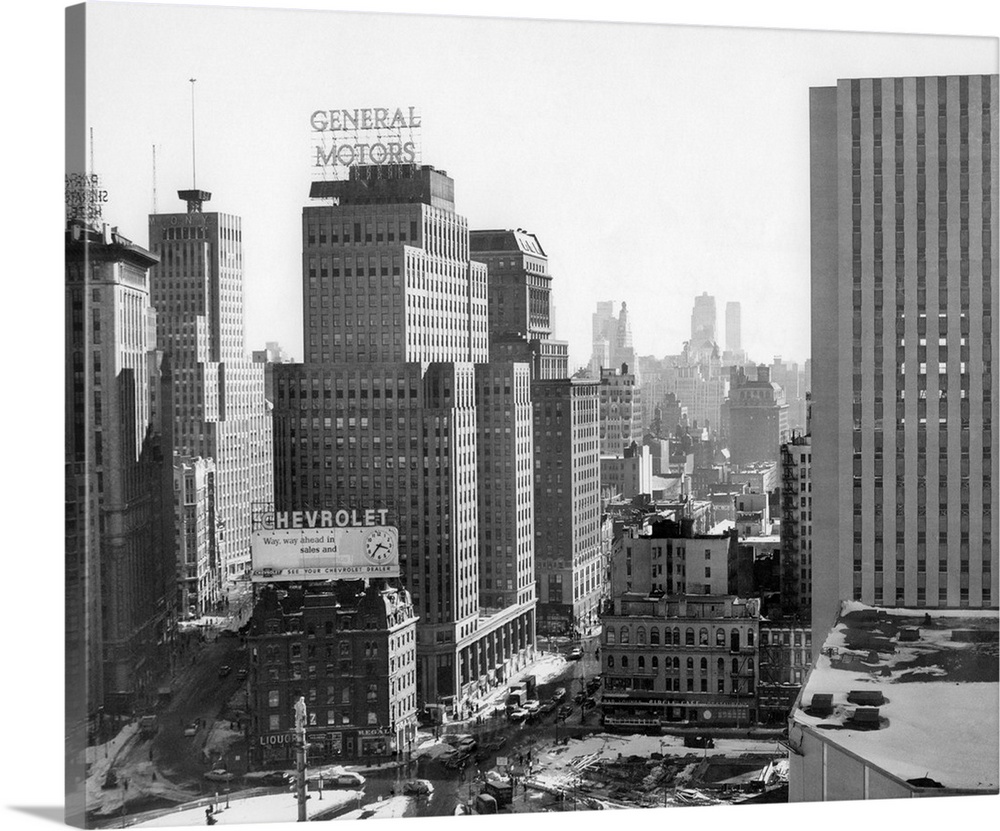 <p>1950's Looking South At 61St Street Coliseum Tower Columbus Circle Excavation For New Building Bottom Center New York City NY USA.</p>