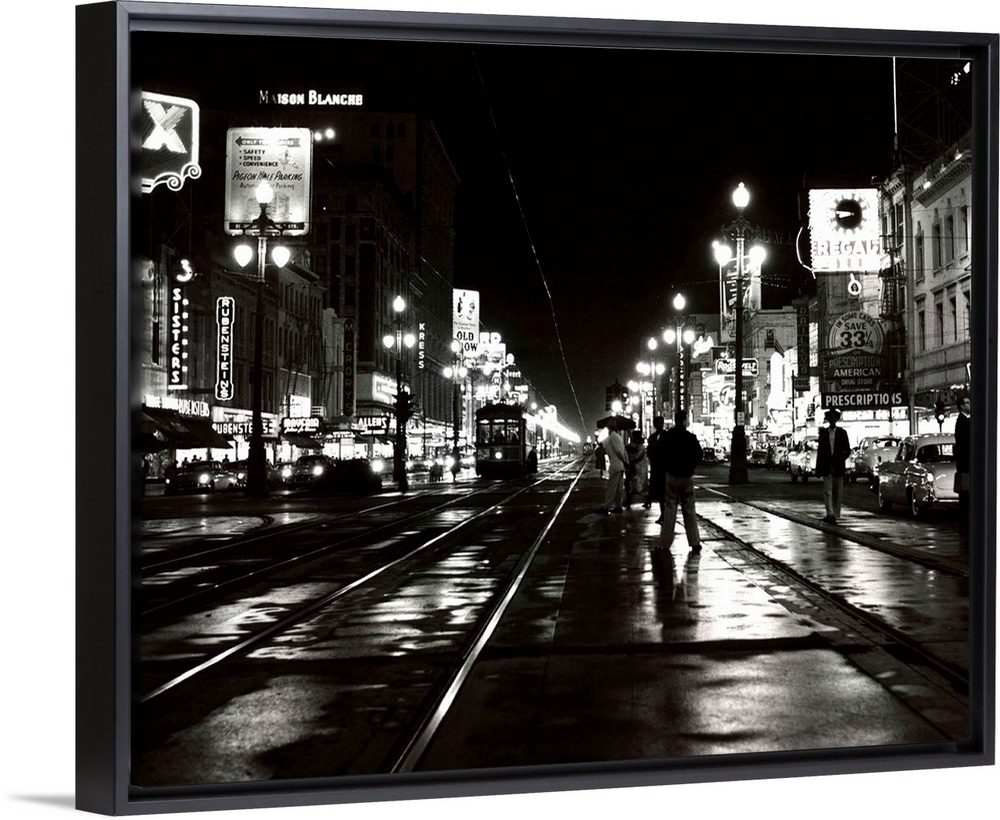 <p>1950's Night Scene Canal Street New Orleans Louisiana USA.</p>