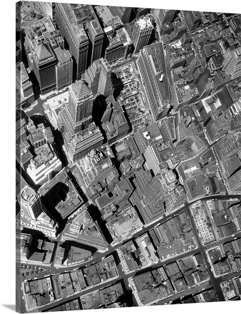 <p>1950's Straight Down Vertical Of The Wall Street Section Of Downtown New York City NY USA.</p>
