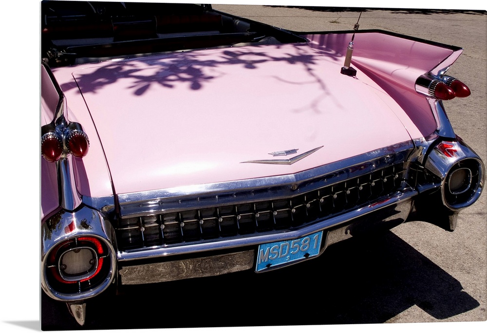 <p>Classic 1959 pink Cadillac convertible on road in beautiful Varadero Beach in Valadero Cuba</p>