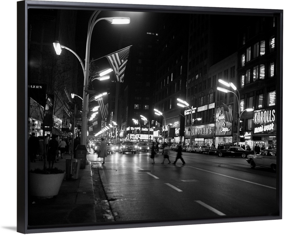 <p>1960's 1963 Night Scene Of Busy Traffic On State Street Chicago Illinois USA.</p>
