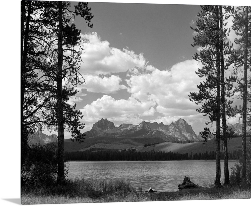 <p>1960's Little Red Fish Lake In Idaho With Saw Tooth Mountains In Background Viewed Between Clearing In Trees.</p>