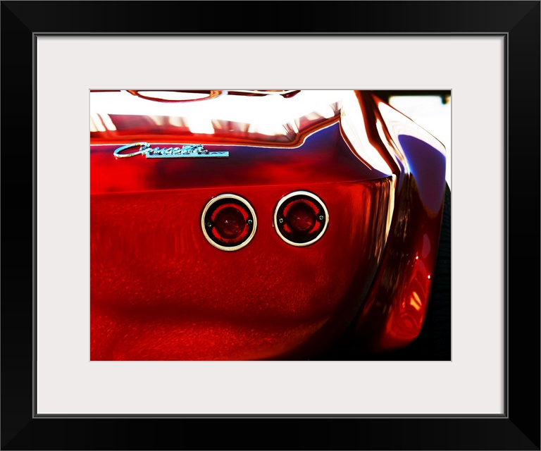 <p>Photograph of the rear and break lights of a red 1963 Corvette Stingray 15.</p>