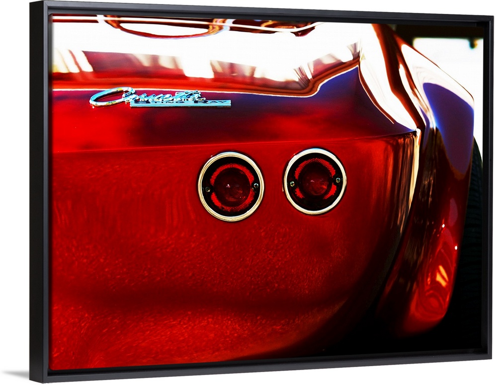 <p>Photograph of the rear and break lights of a red 1963 Corvette Stingray 15.</p>