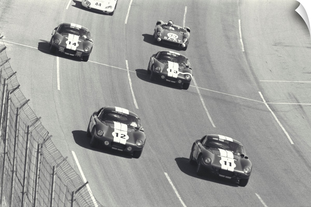 <p>Four of the five Daytona Cobra coupes in action at the 1965 Daytona Continental 2,000 km Race.</p>