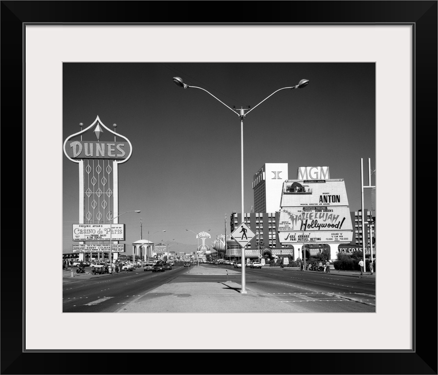 <p>1980's Daytime The Strip With Signs For The Dunes Mgm Flamingo Las Vegas Nevada USA.</p>