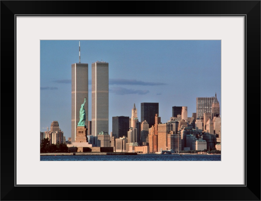 <p>1980s Statue Of Liberty And Twin Towers Of World Trade Center New York City Ny USA.</p>