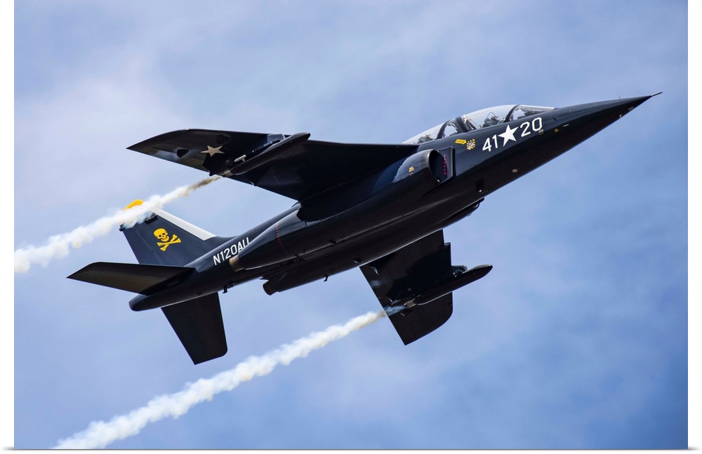 <p>The 1981 DORNIER GMBH ALPHA-JET trailing smoke while performing aerobatic manoeuvres in the 2019 Olympic Air Show, Olympic Airport; Olympia, Washington, United States of America</p>