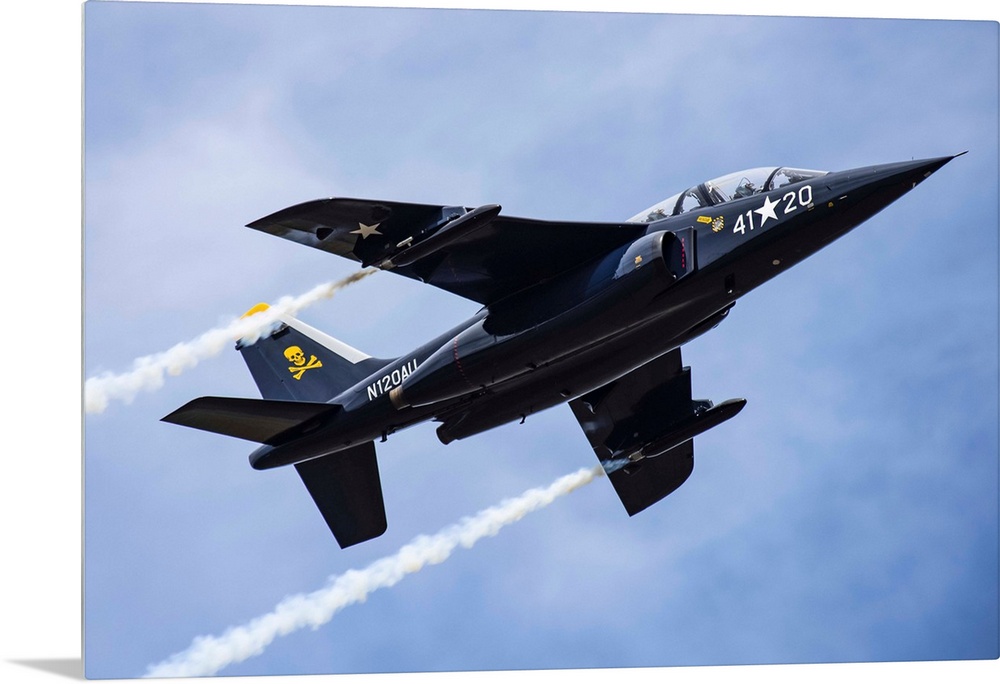 <p>The 1981 DORNIER GMBH ALPHA-JET trailing smoke while performing aerobatic manoeuvres in the 2019 Olympic Air Show, Olympic Airport; Olympia, Washington, United States of America</p>
