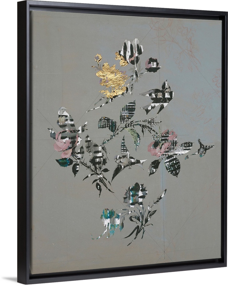 Art Contemporary Art Florals Grey Wall Art Mixed Media Art Wildlife Bird