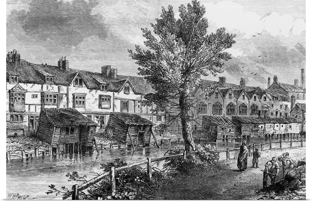 <p>ca. 1894 --- 19th-Century Illustration of Old Houses in London Street, Dockhead --- Image by .. Stapleton Collection/Corbis</p>