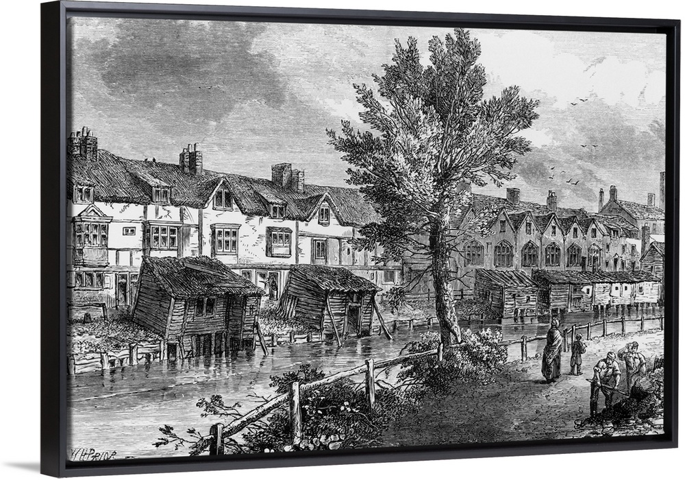 <p>ca. 1894 --- 19th-Century Illustration of Old Houses in London Street, Dockhead --- Image by .. Stapleton Collection/Corbis</p>