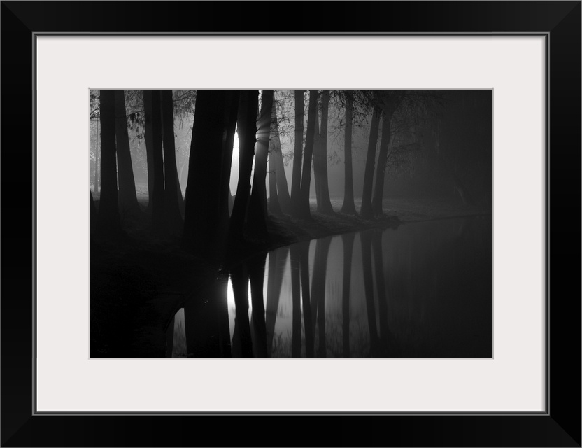 <p>Trees at the edge a river in a forest at night, taken one minute before midnight.</p>