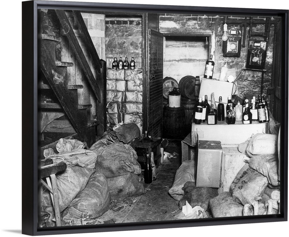 <p>$30,000 worth of bootleg liquor believed to have been smuggled from Canada, found in St. Louis, Missouri, 1931.</p>