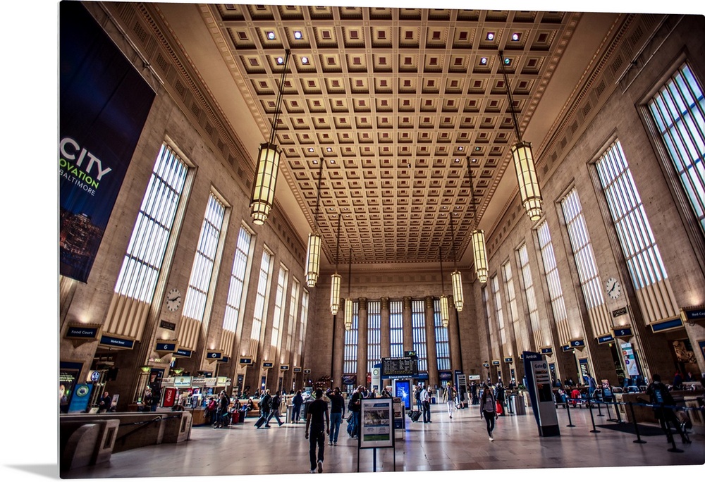 <p>Photo of 30th Street Train Station's interior grand ceiling in Philadelphia, Pennsylvania.</p>