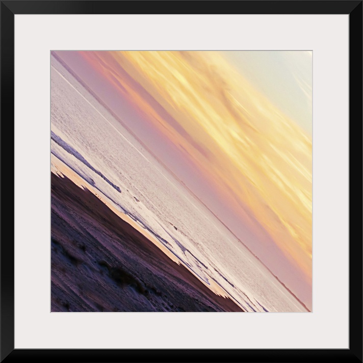 <p>A pastel-colored sky at sundown seen at a sharp angle, creating an abstract image.</p>