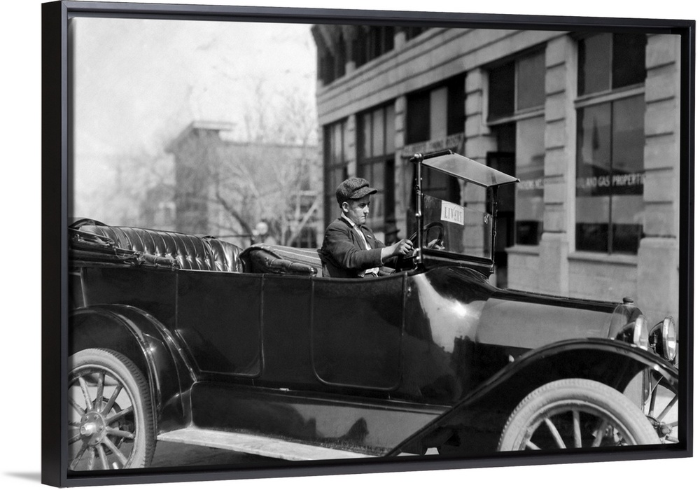 <p>A 15-year-old chauffeur driving a taxi in Tulsa, Oklahoma, March 1917.</p>